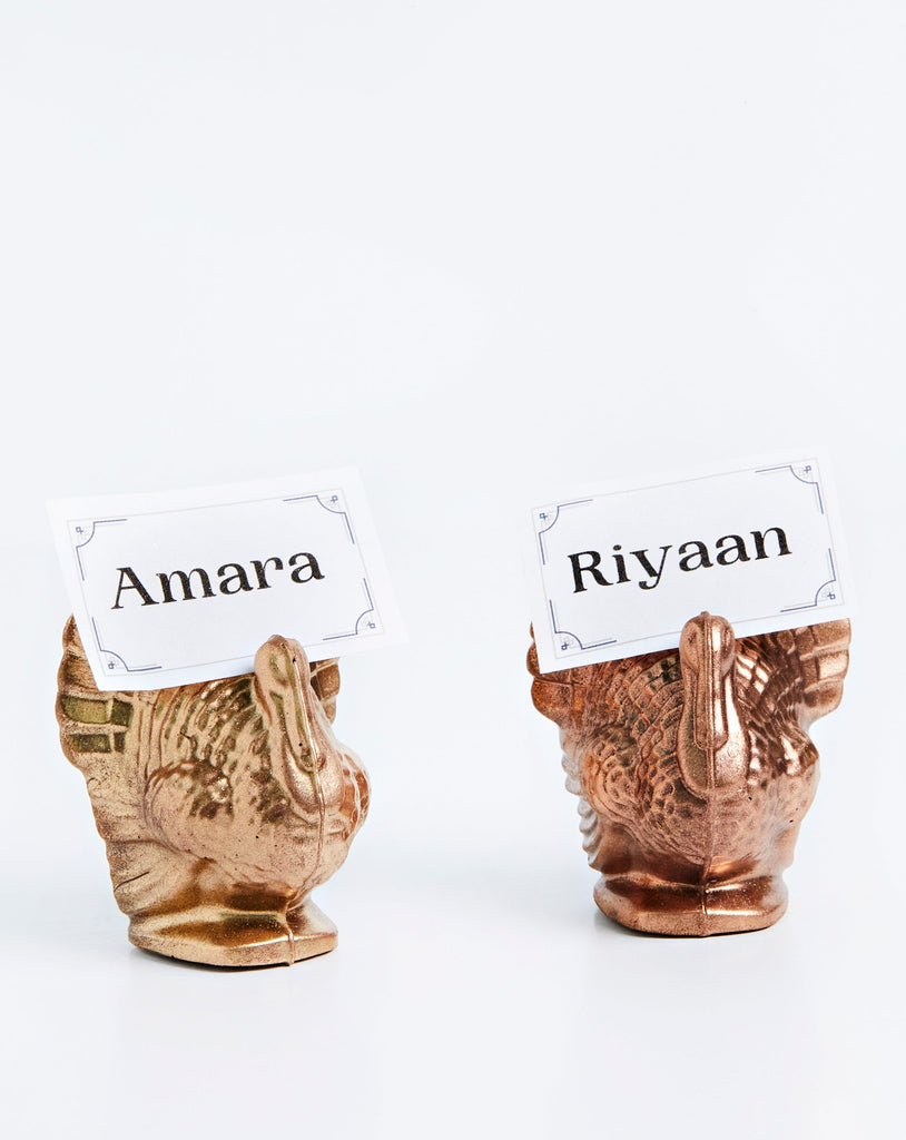 Cinnamon caramel ganache filled turkeys, perfect name card holders for your Thanksgiving table!